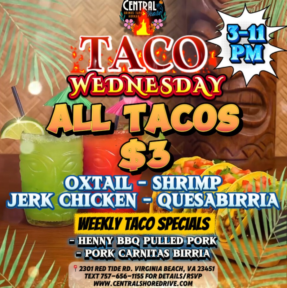 🌮 $3 tacos (oxtail, shrimp, jerk chicken, quesabirria) + weekly specials