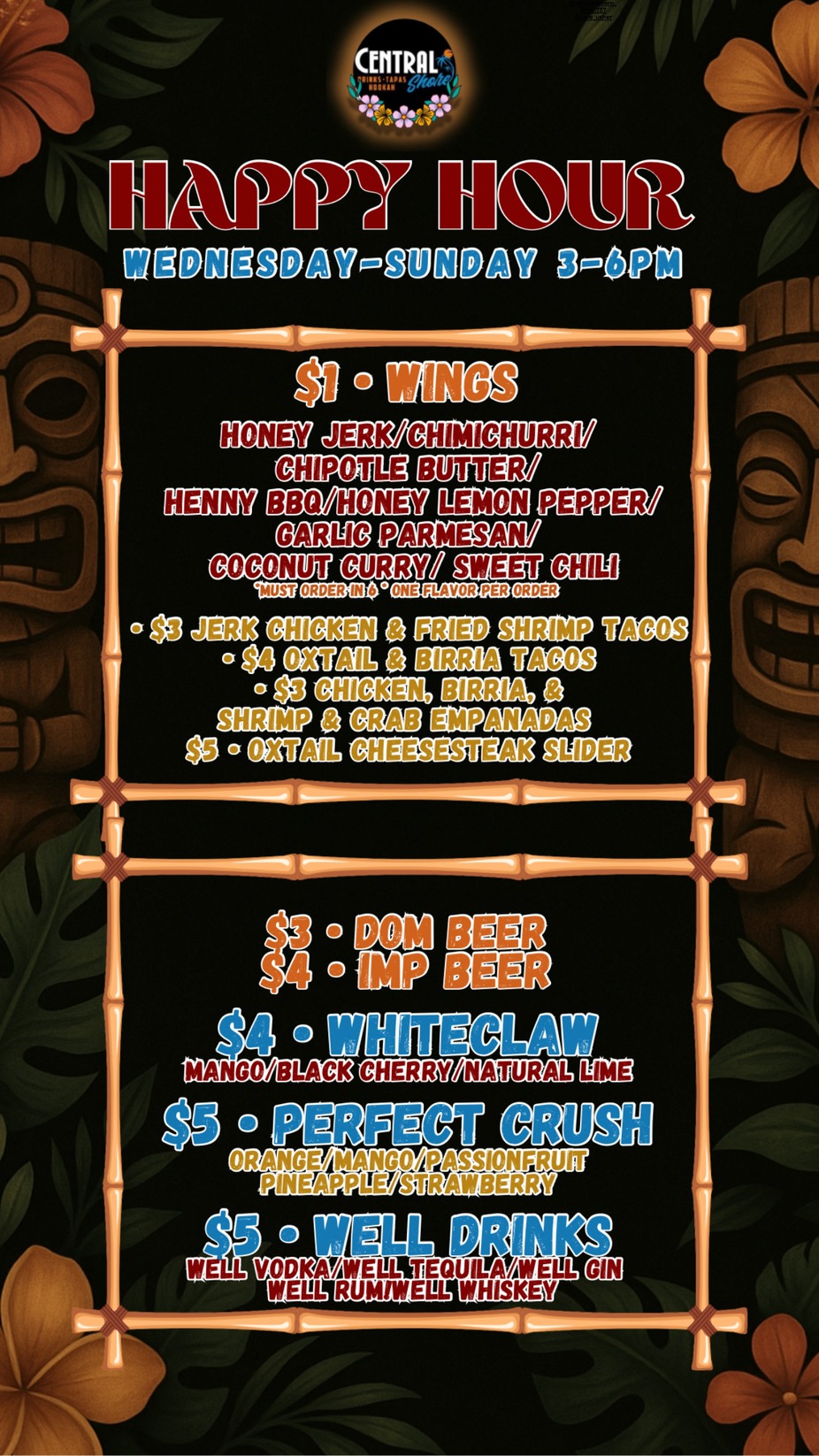 Escape to the tropics Monday, Wednesday-Friday from 3-6 PM & Saturday-Sunday 5-6 PM at Central Shore! 🌴✨